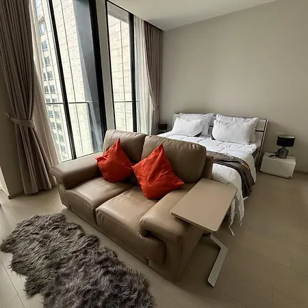 The apartment is furnished with an equipped kitchen for guests' convenience. This apartment is a few steps from Phloen Chit metro station. This apartment has a private swimming pool and a terrace.